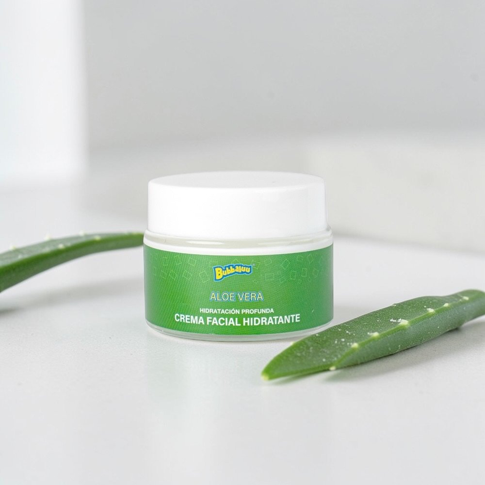 La Crema Facial Hidratante Aloe Vera Bubbaluu proporciona hidratación profunda, suaviza la piel y ayuda a mantener el rostro fresco, humectado y revitalizado durante todo el día.