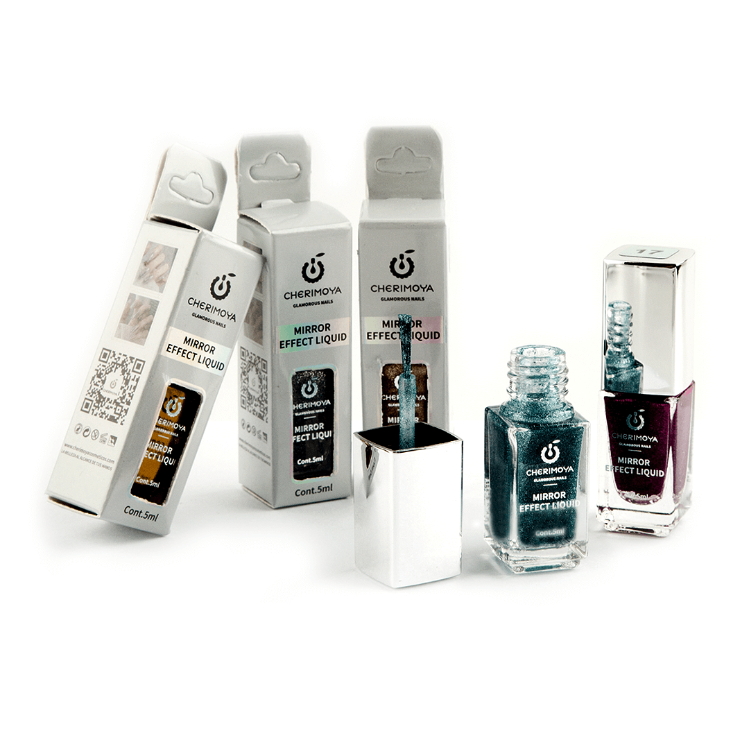 Dale a tus uñas un brillo metálico impactante con el último lanzamiento nail art de Cherimoya! Nuestro líquido efecto mirror crea un acabado espejo ultra reflectante en segundos, logrando un look elegante y sofisticado. Transforma tu manicura con este efecto novedoso y deslumbra con cada reflejo!