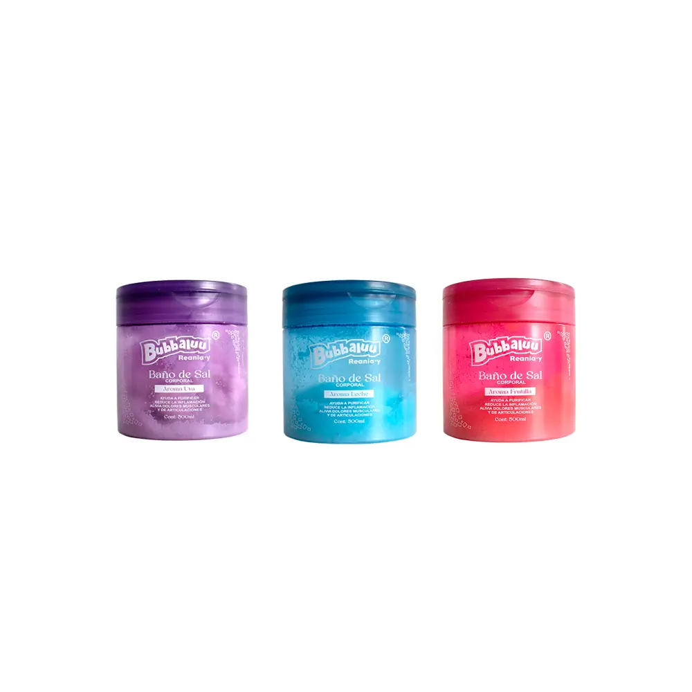 Descubre la frescura y renovación con el Baño de Sal Corporal de Bubbaluu, especialmente formulado para revitalizar y suavizar tu piel.