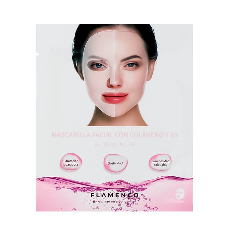 Nuestra mascarilla facial con Colágeno y B5 proporciona hidratación rápida y ayuda a mejorar la elasticidad y luminosidad del rostro.