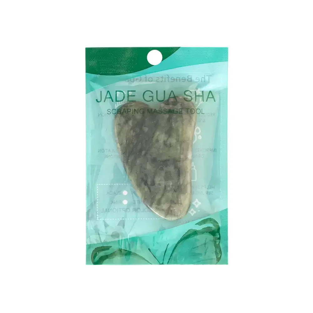 Transforma tu rutina de cuidado personal con el poder ancestral del Jade Gua Sha, una herramienta de masaje tradicional utilizada para revitalizar la piel y estimular la circulación. Fabricada con auténtica piedra de jade, su forma ergonómica se adapta perfectamente a los contornos del rostro y cuerpo, permitiendo masajes suaves pero profundos.