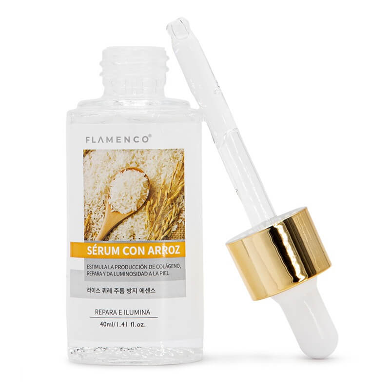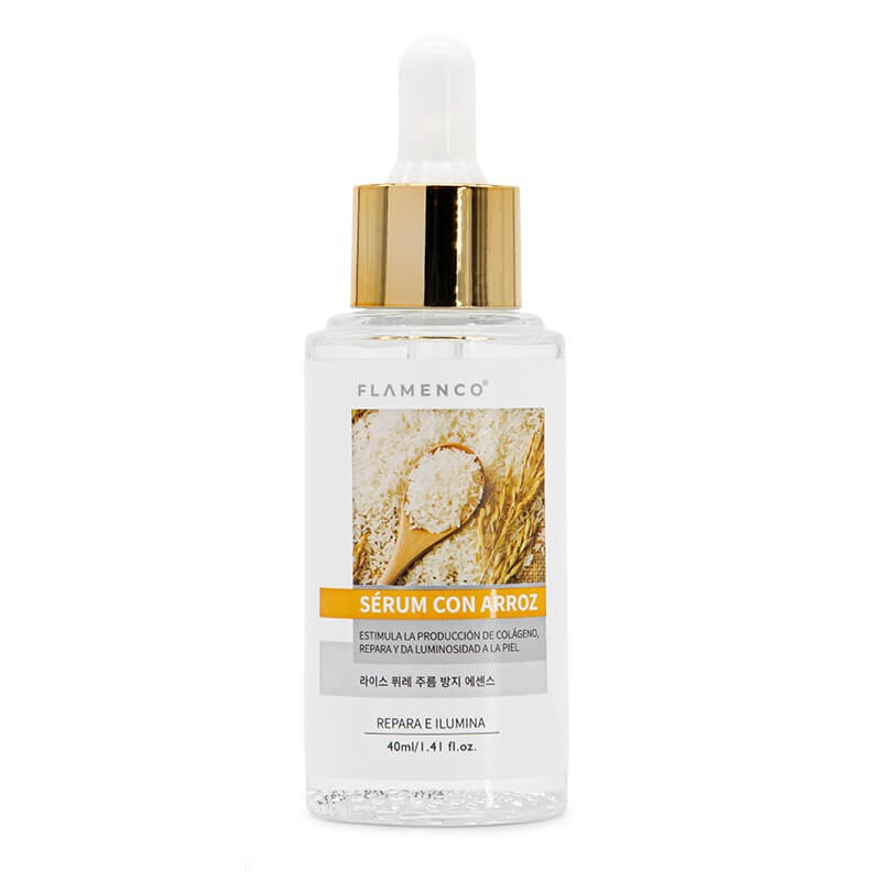 Nuestro sérum facial con extracto de arroz ha sido formulado para nutrir y rejuvenecer la piel al estimular la producción de colágeno y así ralentizar los signos del envejecimiento. Inhibe la formación de melanina, reduce las manchas oscuras y mejora el tono de la piel, dejándola más suave y luminosa, y devolviéndole su brillo juvenil.